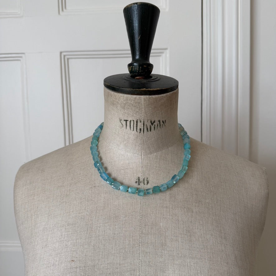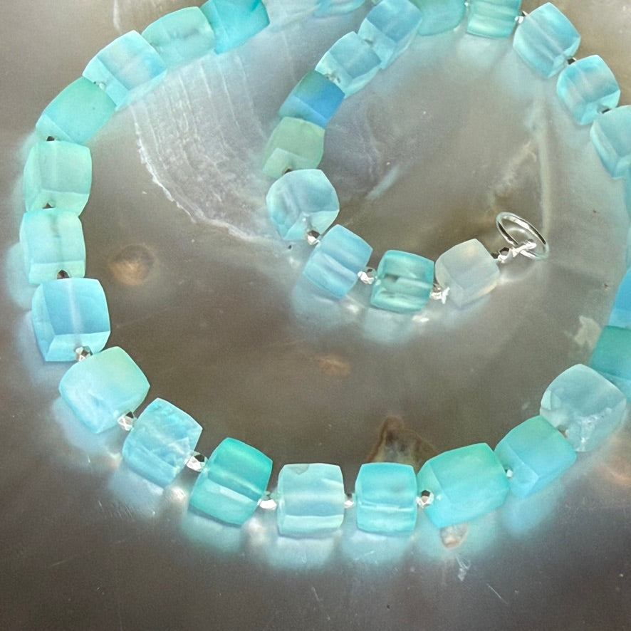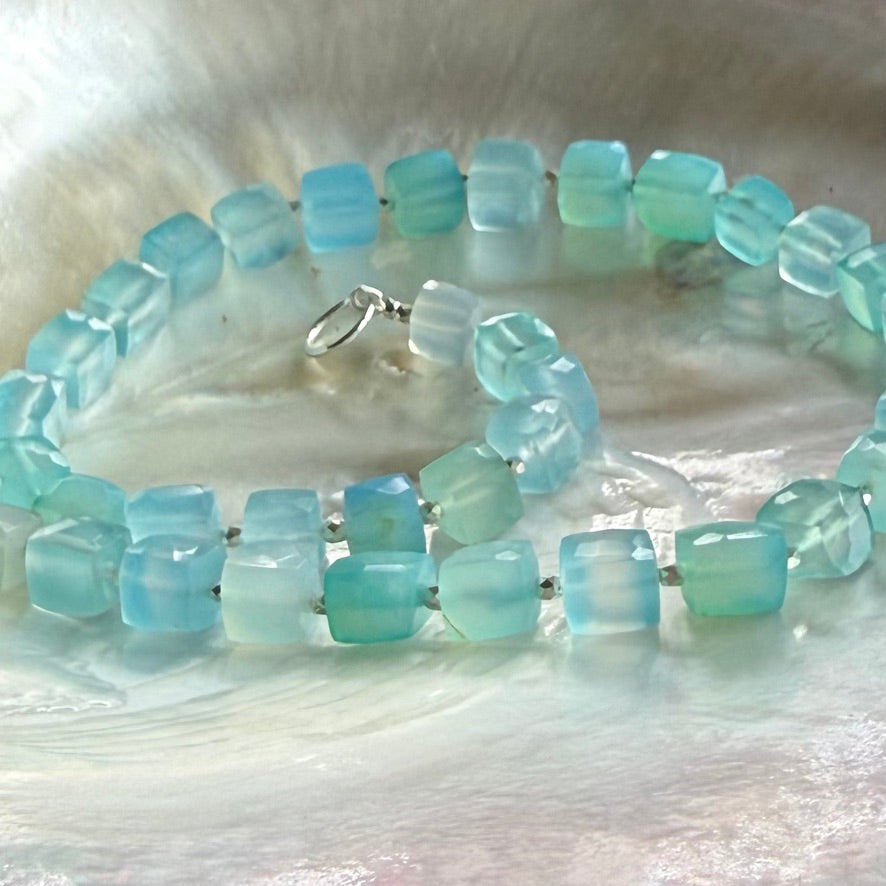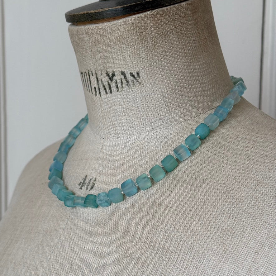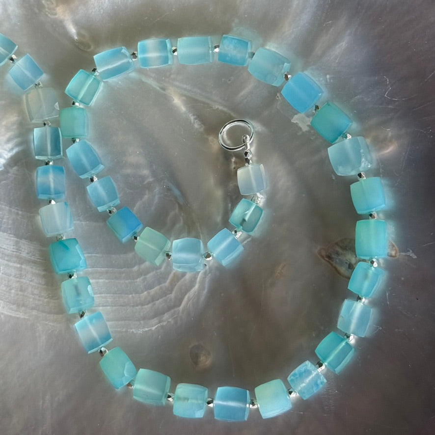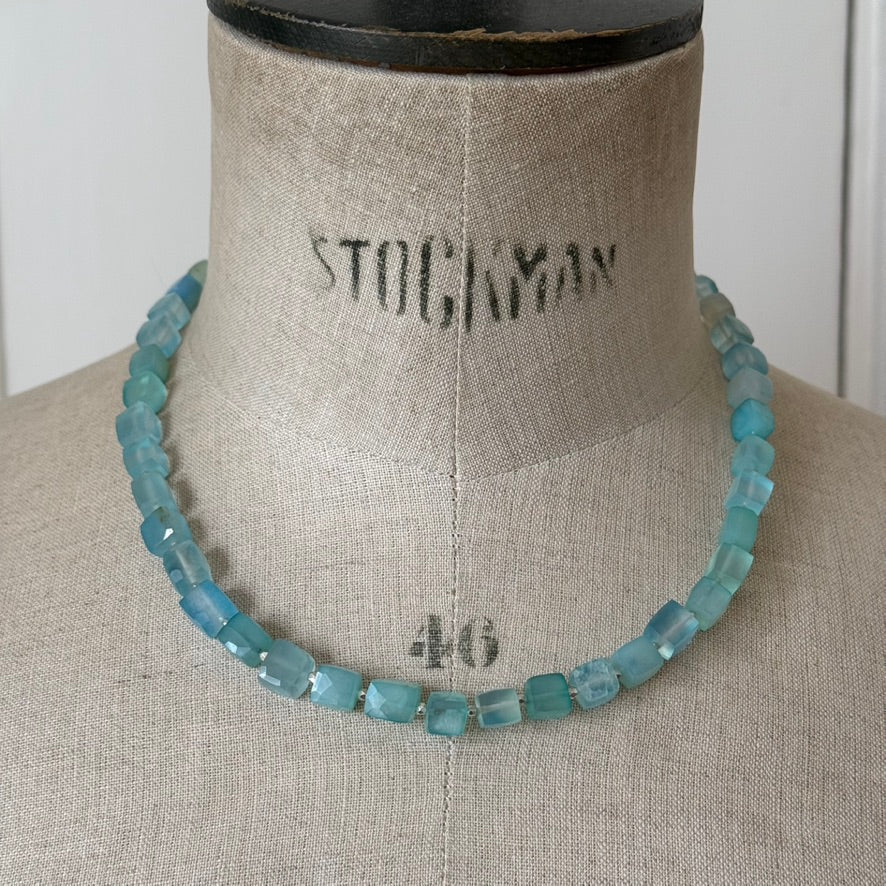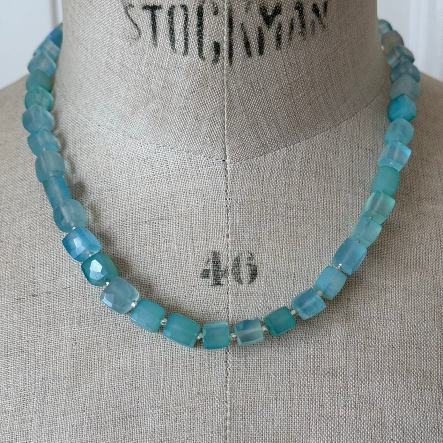The irregular hand cut natural Chalcedony cubes are approx. 7 to 8mm sq. making this an impressive and radiant necklace