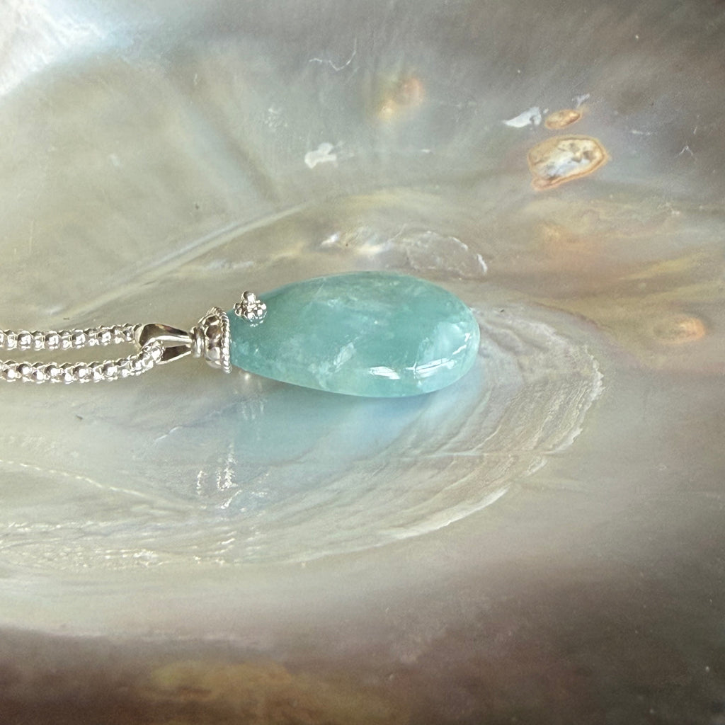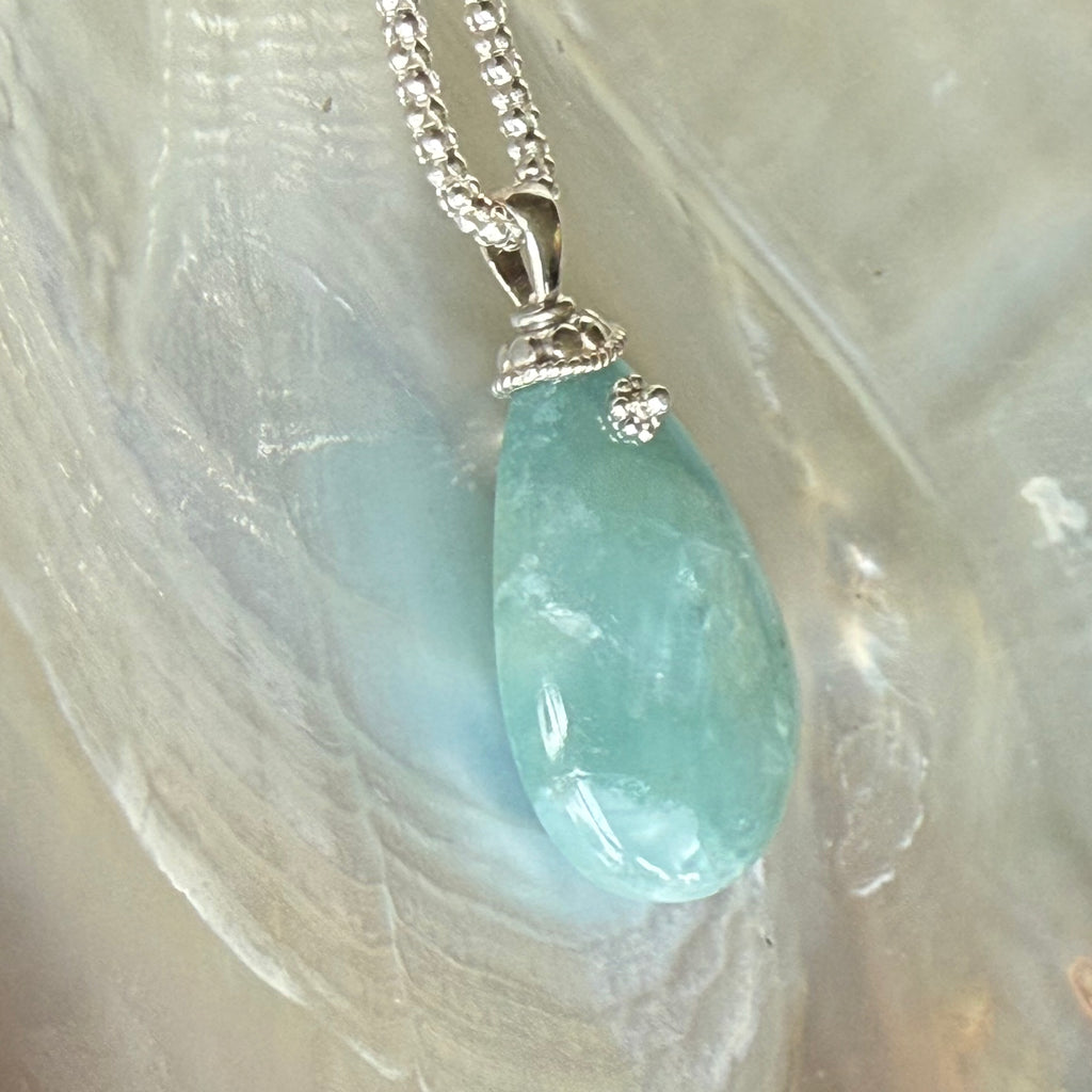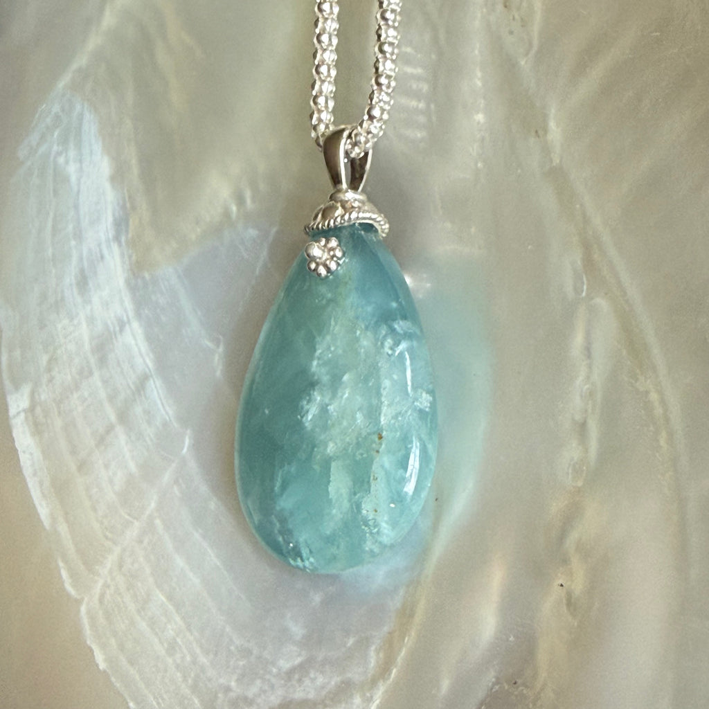 This impressive dreamy natural Aquamarine drop makes for a very remarkable necklace