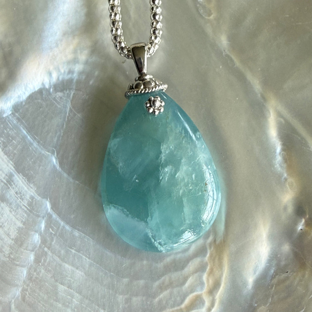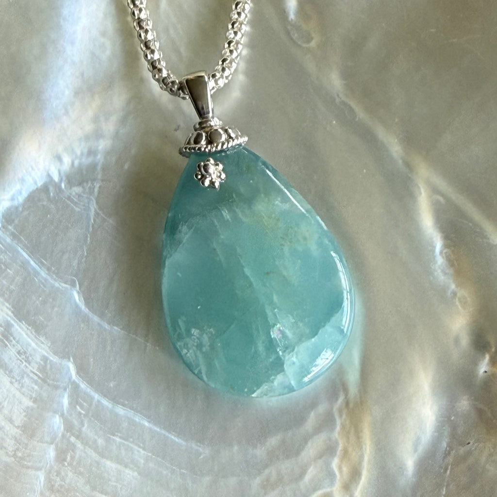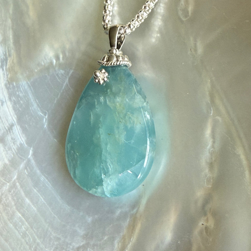 This impressive dreamy natural Aquamarine drop makes for a very remarkable necklace