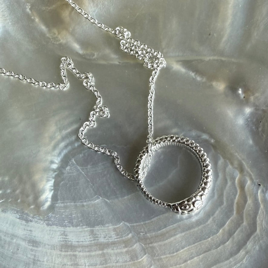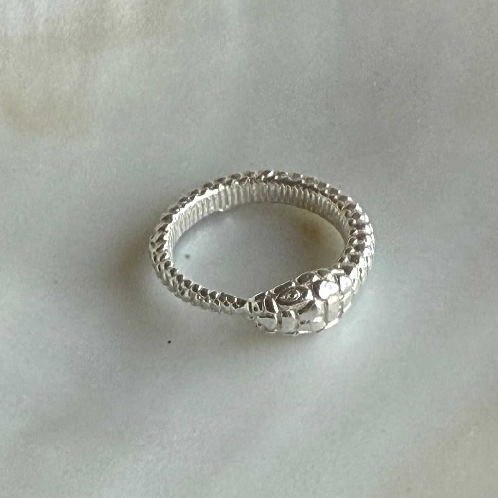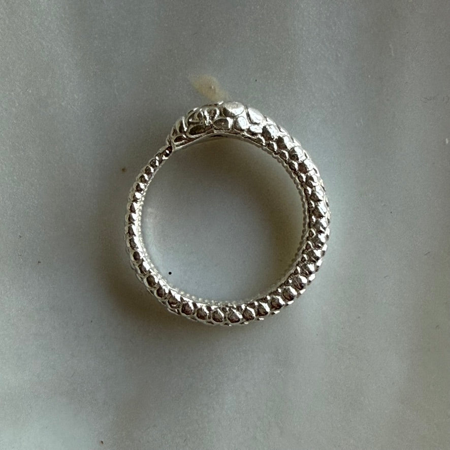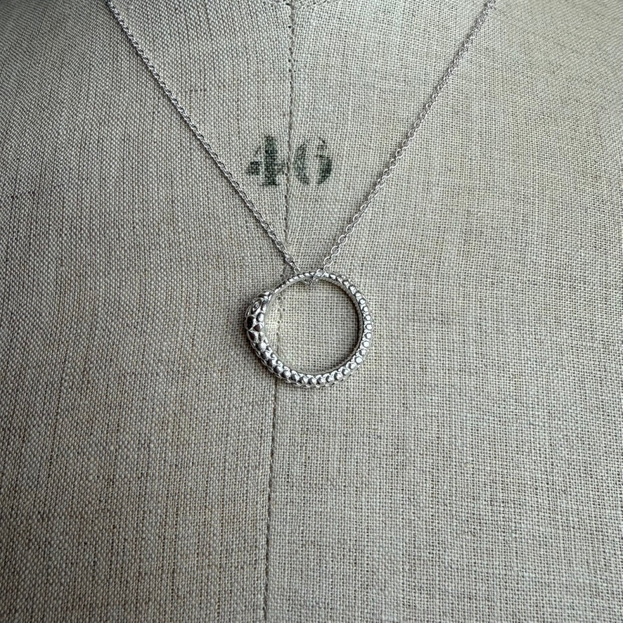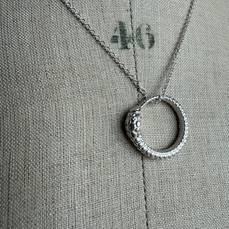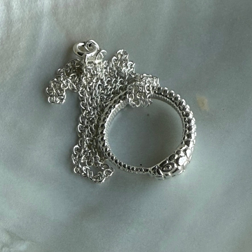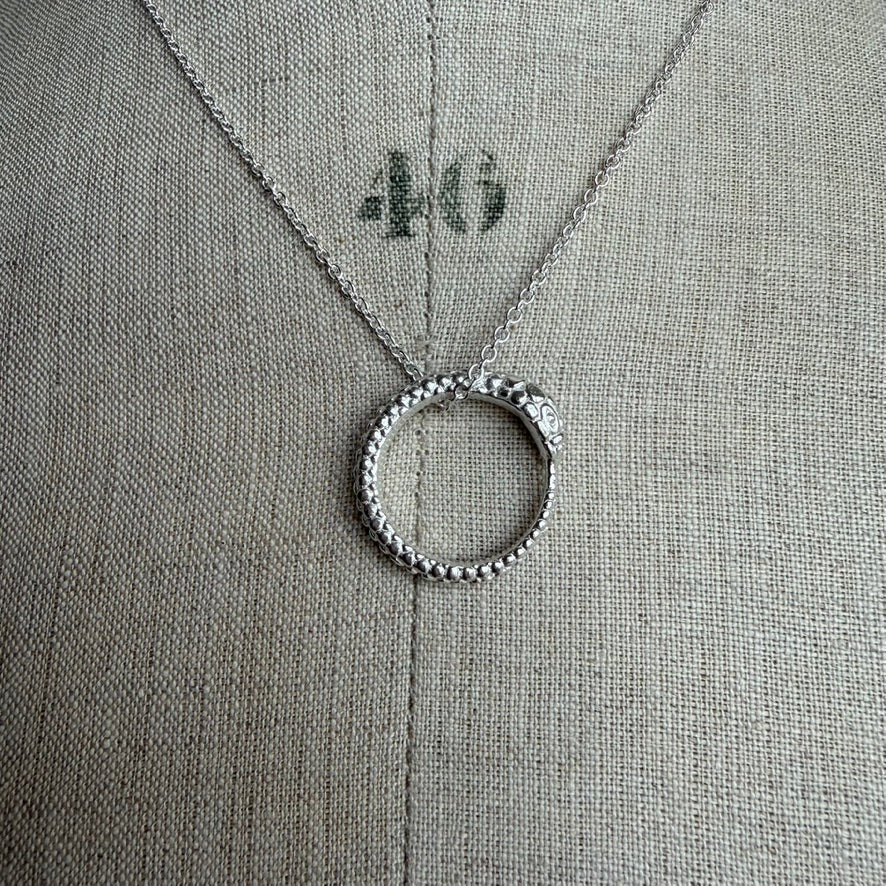 An 18" chain looks great with this snake pendant which can be removed and become a size N ring