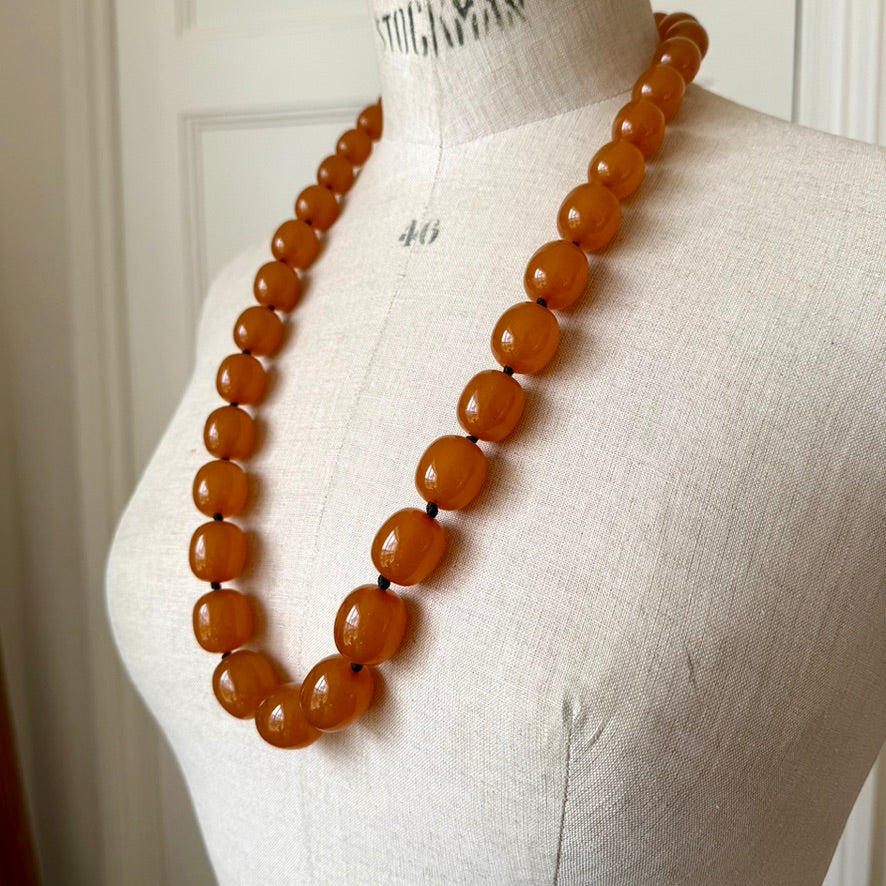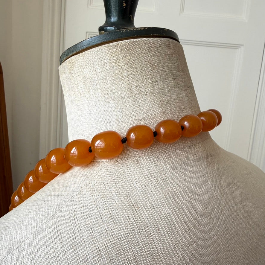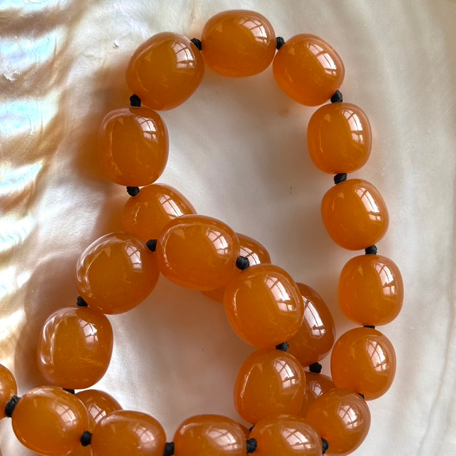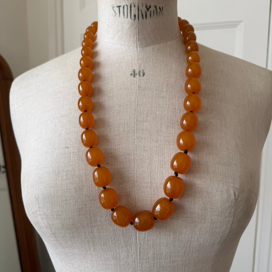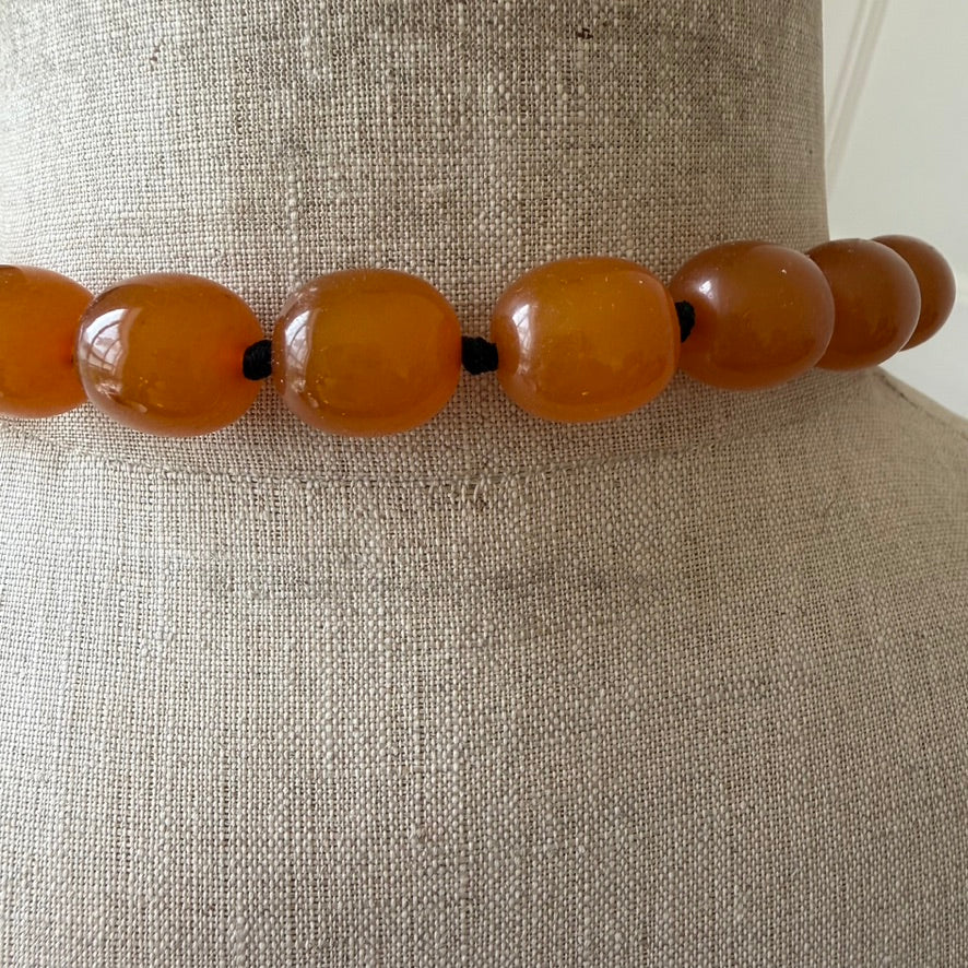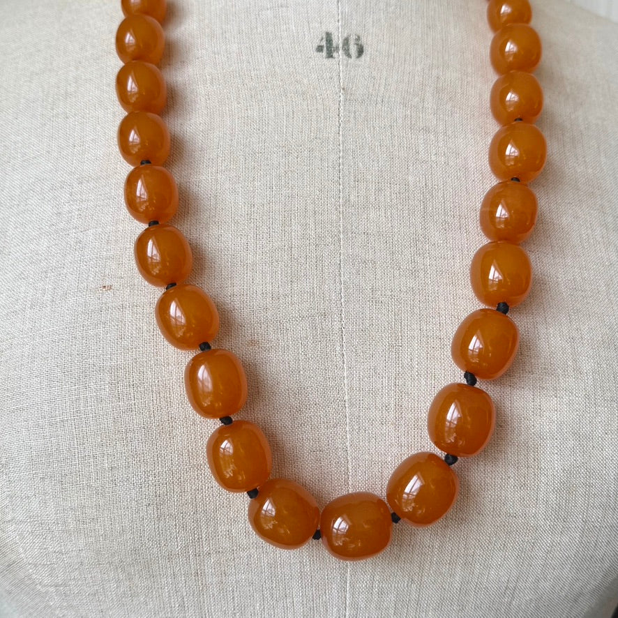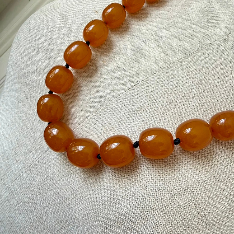 Beautiful Amber bead necklace - hand knotted on jet black thread for contrast, this piece is a rare find