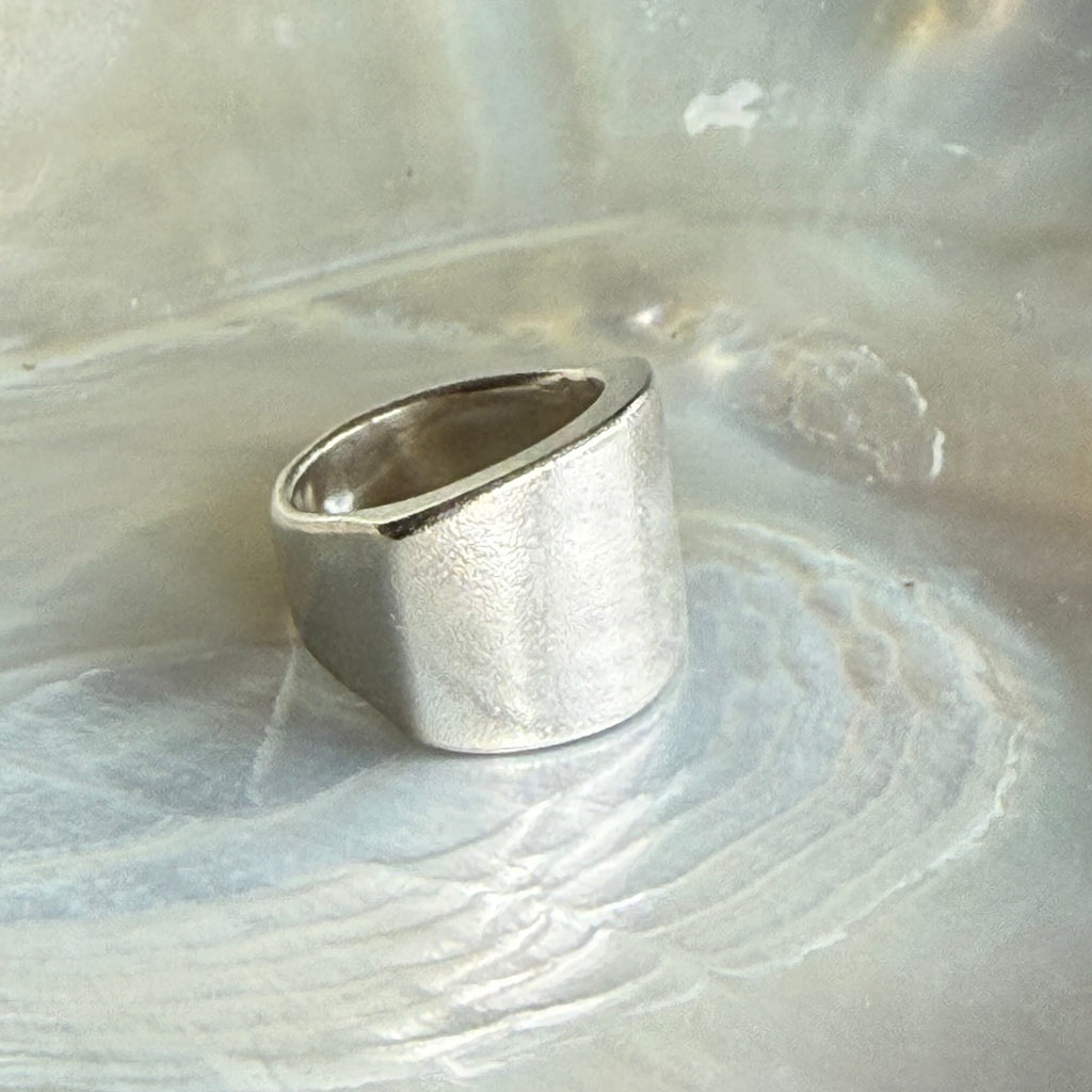 Modern, simple and contemporary - a solid looking ring with a textured surface